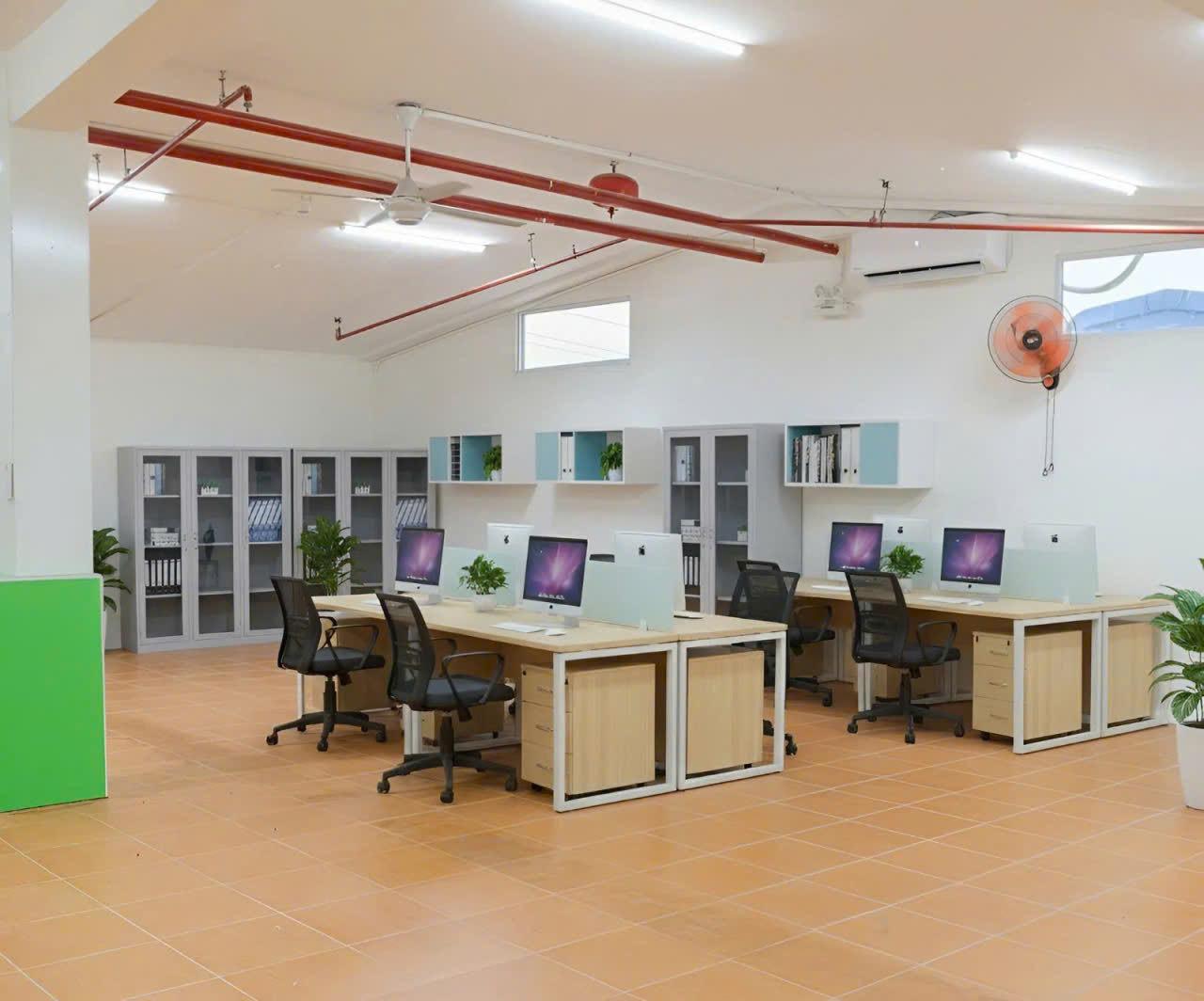 A functional office environment where engineering work, testing coordination, and project documentation are carried out.